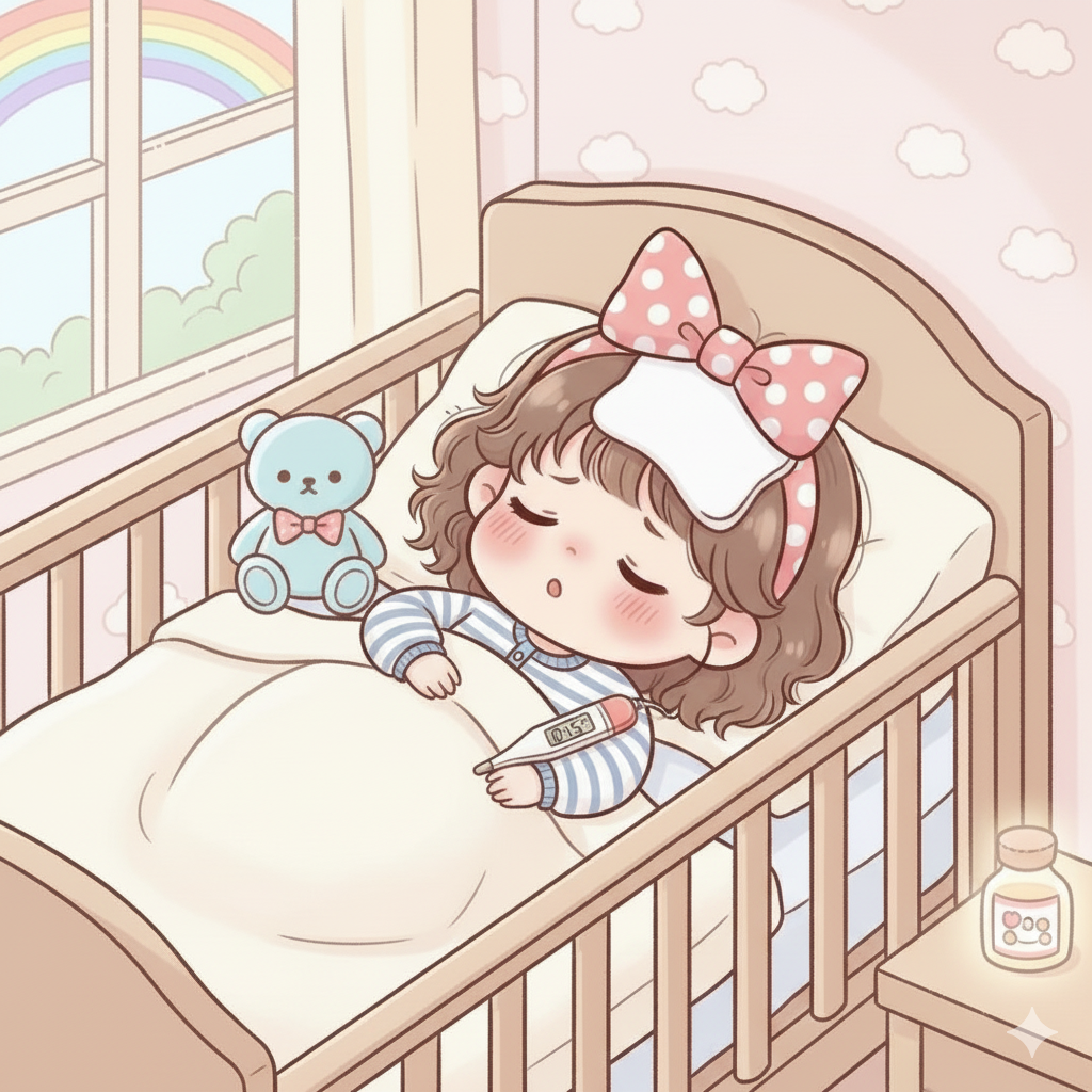 - 고열로 아이가 힘들어하면 **해열제**를 복용시키고, 실내 습도를 높이고 환기합니다.