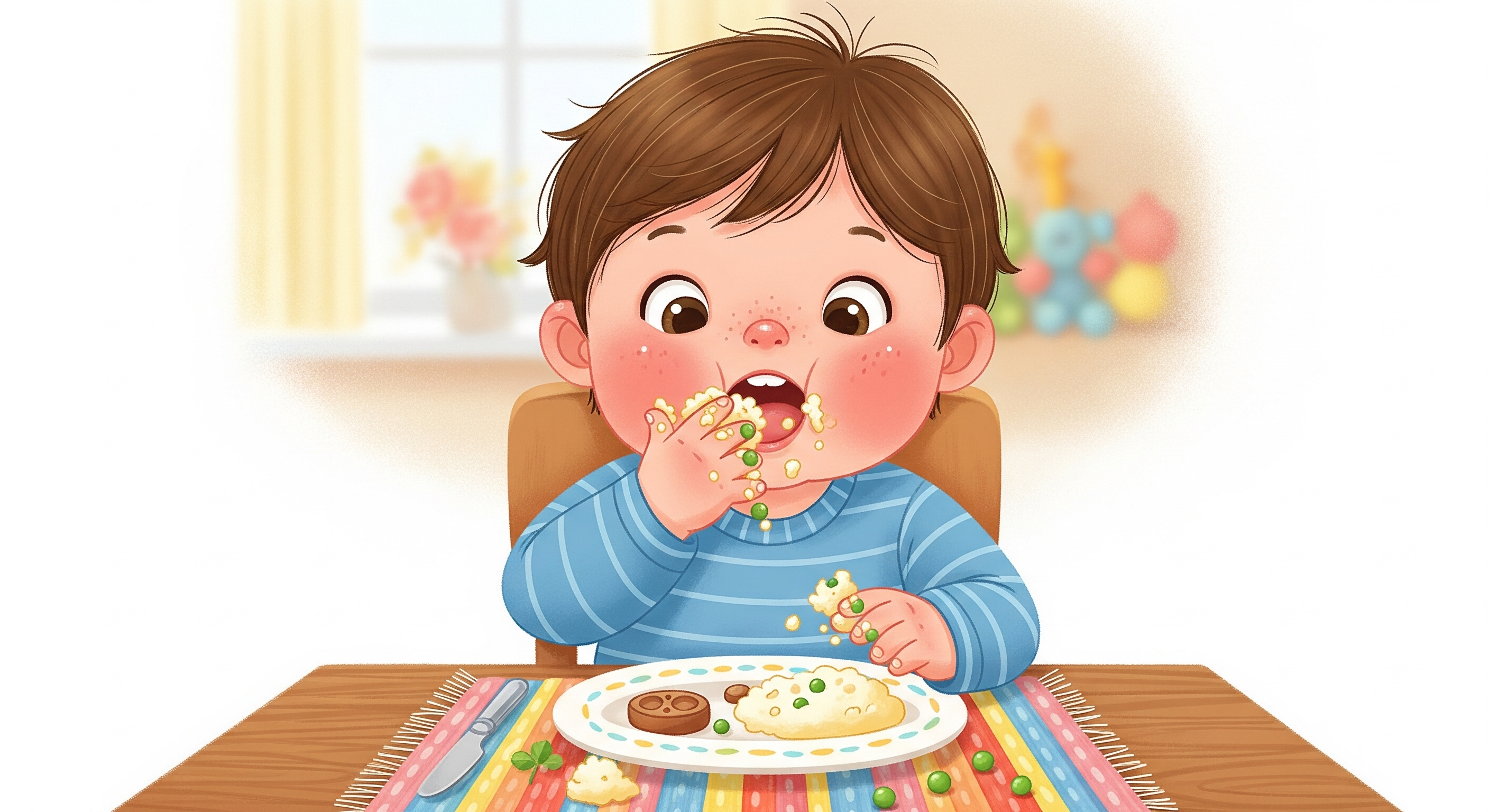 - 감각 통합 (Sensory Integration): 아이들은 손과 입을 이용해 음식의 **질감, 온도, 형태** 등을 탐색합니다. 이러한 촉각적 경험은 뇌가 감각 정보를 처리하고 조직화하는 능력을 키우는 데 필수적입니다. 손으로 음식을 만지는 것은 아이가 다양한 감각 자극에 익숙해지는 중요한 과정입니다.